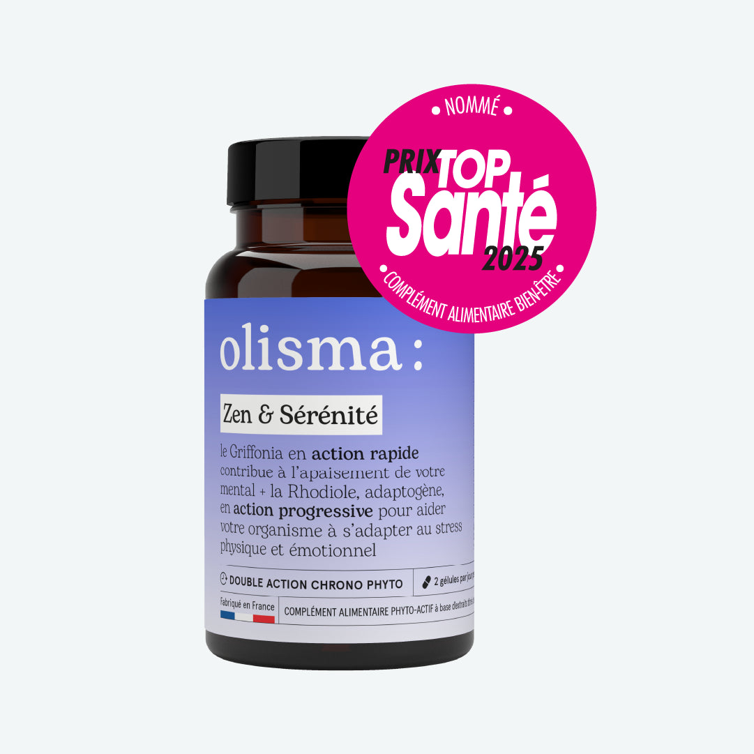 En parallèle d’une alimentation variée et équilibrée, certains compléments alimentaires peuvent nous donner le coup de pouce espéré pour apaiser le mental et diminuer le stress physique, mais aussi émotionnel. C’est le cas du complément alimentaire Olisma zen et Sérénité, formulé à partir de Griffonia et de Rhodiole. Le Griffonia est une plante qui contribue à soutenir l’équilibre émotionnel et à diminuer l’anxiété légère, en favorisant la production de sérotonine, l’hormone du bonheur. La Rhodiole, elle, est une plante adaptogène qui renforce la stabilité émotionnelle et aide l’organisme à faire face au stress. L’innovation ? Une double libération des actifs, immédiate pour le Griffonia et prolongée pour la Rhodiole, qui nous permet de bénéficier des bonnes propriétés au moment le plus juste.